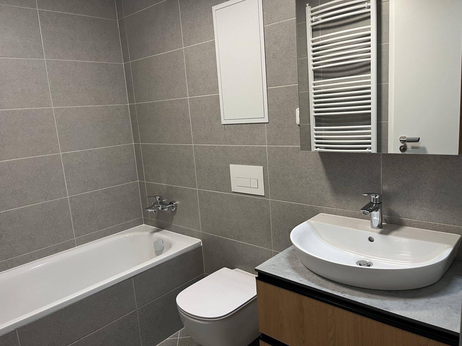 Exkluzivně Vám nabízíme pronájem moderního bytu v novostavbě 2+kk/B 52m2, komora v bytě, garážového stání, ul. Návarovská, Praha 9 - Prosek. Byt se pronajímá dlouhodobě, zařízený dle foto. Příjemné místo, výhled na V. Byt je ve třetím patře novostavby ve velmi žádané lokalitě. Dům i byt je postaven ve velice kvalitním provedení. Dům je nový, bezpečný, čistý, klidné a příjemné místo. V bytě zděné jádro. Prostorná koupelna s vanou a WC. V koupelně příprava pro pračku. Nová kuchyňská linka, trouba, indukční deska, myčka, lednička s mrazákem, obývací stěna s držákem pro televizi, stůl. V bytě komora - šatna. Na oknech žaluzie. Podlahy: vinyl a dlažba. Lokalita s výbornou dostupností MHD a občanskou vybaveností v blízkém okolí. V blízkosti je řada sportovišť v přírodním prostředí, např. golfové hřiště, tenisové kurty, fitness-centrum, cyklostezka, bazén. K oblíbeným vycházkám patří také nedaleký rozsáhlý Lesopark. Srdečně tuto nádhernou nemovitost doporučuji. Možnost připojení kabel. TV a internet. K ceně nájmu 24.000-Kč + 5.000,-Kč zúčtovatelné poplatky. Bližší info u makléře. Prohlídka možná kdykoliv po předchozí telefonické dohodě. Ihned k nastěhování.